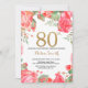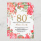 Röd Blommig 80-års Födelsedagsinbjudan Guldglitter Inbjudningar