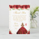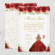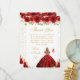 Detta eleganta och glamourösa födelsedags tackkort har en vacker prinsessa med blondt hår och ljus hy i en röd balklänning. Texten kombinerar handskriven stil och moderna sans serif-teckensnitt för en klassisk och sofistikerad look. De blomsterarrangemang, fjärilar och guld konfetti skapar den perfekta blandningen av rustik och chic.