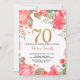 Röd Blommigt 70:e födelsedagsinbjudan Guld Glitter Inbjudningar