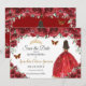 Röd Blommigt Princess Guld Quinceañera Spara datum Datumet