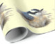 Denna papper är dekorerad med en upprepad mönster av den rödbrast nuthatch som ser ut som om han tar över ansvaret! Han är en mycket liten fågel med rost färgad, blått och grått och svart öga rand på sin vita ansikte. Hans huvud och slag är mycket stora i förhållande till hans kropp.