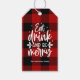 Röd Buffalo-rutig "Ät, drick och var glad" Presentetikett