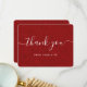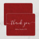 Rustik röd tackkort med röd hessianbakgrund och modernt typsnitt. Anpassa enkelt detta tackkort för ett bröllop, bröllopsdusch, födelsedag eller annat tillfälle.