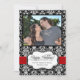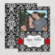 Ett lyxigt och fashionabelt julkort med ert enda familjefoto. Stilren och elegant svart-vit damaskbakgrund med scharlakansröda accenter. Alla mönster Copyright © www.zazzle.com/ChristmasCardShop*