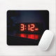 En digital klocka som visar 03:12 på morgonen i ljusröda lysdioder sprider ett varmt rött sken i det svagt upplysta rummet från sin plats på en mörk träyta