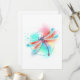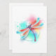 Röd, flygande, konstnärligt ritad, ljusa färger med texturerad irdescent, blått vingar på vit bakgrund, målad med stänk av vattenfärgsfärg. Ljusröd dragonfly.