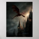 Röd Drak Över Gotiskt Slott Poster