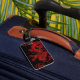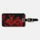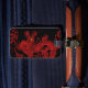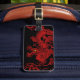 En röd kinesisk drake för blod med gult synar mot en svart bakgrund.
