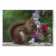 Detta noterar kortsärdrag som en förtjusande röd ekorre som har ett mellanmål av solrosen, kärnar ur med en bakgrund av rosa- och vitpetunias och älskvärd grönska. Ett mindre avbildar av den samma ekorren är inre.