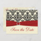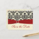 Detta krämfärgade, röda och svarta damaskus-spara datum vykort matchar bröllopsinbjudan och andra föremål som visas nedan.