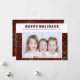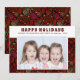 Röd ettlinje konst konstnärliga glada helgdagar familjefoto julkort. Abstrakt handritade former i rött och rosa på svart bakgrund. Lägg till din text och foto och skapa ett sött och chic familjehelgdagskort.
