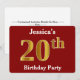 Denna inbjudan design har det ordinala numret "20th" med ett falskt guldliknande utseende. Den har också ett anpassningsbart namn och en röd bakgrund. Evenemangsinformationen på baksidan kan anpassas. Den kan användas för att inbjuda människor till någon tjugonde födelsedagsfest. [~Z0000012]