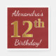Den här enkla pappra napkin-designen innehåller ett meddelande som "Alexandra’s 12:e Birthday!", där "12:e" har ett utseende som liknar guld, på en röd färgad. Namn kan vara personlig. Den skulle kunna användas i en födelsedagsfest för någon som firar sin tolfte födelsedag. [~Z0000080]