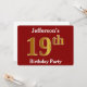 Röd, Faux Guld 19:e Födelsedagsfesten + Anpassat n Inbjudningar