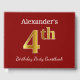 Den här gästdesignen i bok har ordnumret "4th" med ett faux guld-liknande utseende. Den har också en anpassad namn och en röd färgad. Den skulle kunna användas i party för att fira deras fjärde födelsedag. [~Z0000055]