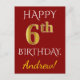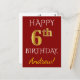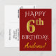 Röd, faux Guld 6e-födelsedag + anpassat vykort