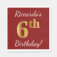 Den här enkla pappra napkin-designen innehåller ett meddelande som "Riccardos födelsedag i 6e!", där "6e" har ett utseende som liknar guld, på en röd färgad. Namn kan vara personlig. Den skulle kunna användas i en födelsedagsfest till någon som firar sin sjätte födelsedag. [~Z0000080]