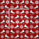 Röd figurskridsko- och snöflingorjul tyg