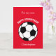 Ett rött fotboll 11-års födelsedagskort för sonson, son, gudson, etc. Du kommer enkelt att kunna anpassa framsidan på detta fotbollsidrottsfödelsedagskort med hans namn. Det interna kortmeddelandet och baksidan av kortet kan också redigeras. Detta personliga idrottsfödelsedagskort för honom skulle bli en fin souvenir.