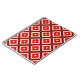Ett konstnärligt sömlöst mönster med röda, orange och beige geometriska former som bildar sammanlänkade stjärnmotiv.