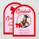 Gör ett djärvt och stilrent intryck med denna röda gingham-band-bågiga fotogradueringsfestinbjudan, designad med en trendig välvd layout, klassiskt rött gingham-mönster och en charmerande bandaccent. Med utrymme för ditt favoritfoto av den nyutexaminerade skapar denna inbjudan ett varmt och personligt sätt att tillkännage din speciella fest. Perfekt för moderna, lantliga eller traditionella examinafester, denna design kombinerar tidlös charm med en fräsch, exklusiv look som gästerna kommer att älska att ta emot.