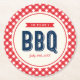 Fira sommaren med ett grillfestparty. Denna rundaBBQ-kustfartyg presenterar ett ljust - orangen tonar centrerar gränsat av ett rött ginghammönster. Kontrollen som matchar ut objekt, gillar inbjudan, klistermärkear och frimärken här https://www.zazzle.com/collections/gingham_bbq_party_collection-119000567419036723?rf=238364477188679314