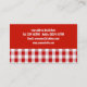 Visitkort med en röd ginghamdesign. Detta kort är klart för customisation med din information om affären. All text kan ändras - ändra stilen, färgar, storleksanpassar, tillfogar eller tar bort textfält för att passa dina behov. Om du behöver någon hjälp, behaga e-posten Kirsty på kirsty_pargeter@yahoo.co.uk