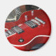 Ett foto av en röd, halvihålig, elektrisk, sex stränggitarr med vit bindning ljugande på en svart åtta vid en gig. Lägg till din egen anpassningsbar för en anpassningsbar musikalisk design, eller använd det här underbara gitarfotot som det är!