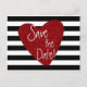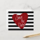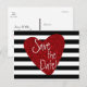 Röd glitterhjärta svart-vitrandig postkort. Anpassa med valfri text för valfritt evenemang.