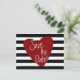 Röd Glitterhjärta Svart Vitt Randigt vykort
