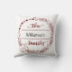 Röd grå monogram efternamn blomsterkrans kudde
