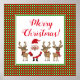 Julplaid i rött, grönt och vitt är bakgrunden för denna juldesign som är ljus, färgglad och full av säsongens glädje! En leende tomte står på rad med tre söta renar som bär festliga röda, gröna och vita halsdukar, allt på en vit bakgrund med en matchande grön ram. Läs Merry Christmas eller anpassa med dina två textrader i festlig röd stil så att du kan anpassa med ditt namn eller favorit-julhälsning eller citat. Kontakta mig på beachpausedesigns@gmail.com med anpassad förfrågan eller om du har någon fråga om denna design!