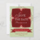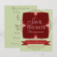 Röd + Grön Spets Spara Datum Inbjudan | Unika och stilrena fraktala spetskanter på ljusgrön bakgrund med små guldstjärnor - perfekt för att tillkännage förlovningar, bröllop, brud shower - anpassningsbar för ditt speciella evenemang : Med en lätt festlig känsla, perfekt om ditt bröllop är under de festliga månaderna