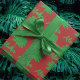 Gröna palmer och aloha-text på en rik julröd bakgrund. En rolig tropisk look för din tropiska jul.
