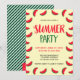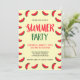 Fira det varma vädret och sommaren med en fest. Denna roliga sommarfestinbjudan har söta röda och gröna skivor av vattenmelon som har blivit delvis uppätna. Inbjudan har även en mönstrad baksida.