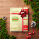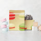 Denna stilfulla helgdagdesign presenterar franska macaronkakor i festliga färger av rött, grönt, och vit. Bakgrunden är ett glam guld omkullkastar look. Ett mycket chic och Parisian långt att fira jul!