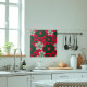 Keramisk keramik med röd grönt blommigt med en modern botanisk elegant med tropisk känsla, perfekt för helgdag, vår, fall, höst eller vinterdekortecken.