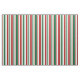 Stilfullt geometriskt tyg presenterar rött, mintgrönt, mörk - göra grön, och vitrandar i varierande bredder. Det moderna julmönster är perfekt för helgdagdekor och tillbehör.
