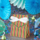 Röd-, grönt- och guld-stripe-affär med band. Perfekt för alla teman för dekoration av gåvor; enkel/minimalistisk till maximalistisk beroende på ytterligare försköning.