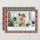 Önskar släkt Glad helg med ett landskaps- och grönt-pläderat julfotkort som visar din familj på framsidan över ett färgat vattenfärgsrött och grönt julklappat mönster. Helgdagskorten med julfoto är ett perfekt sätt att helgdag och önskemål för en lycklig-julhelg. BERNARD-samlingen har ett foto av din familj med ett Glad helg-meddelande på framsidan och året i ett klassiskt serif-teckensnitt i grönt, med ett rött och grönt i mönster.