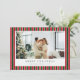 Önskar vänner Glad helg med ett rött julfotkort i grönt i en landskapslayout som visar din familj på framsidan över en röd och grönt jul i rand mönster, och en baksida med tre bilder i familjen och en redigerbar och söt liten nalle. Vågräts tvåsidiga helgdagskort med julfoto i rand är ett perfekt sätt att helgdag och önskemål för en julhelg i lycklig. BERNARD-samlingen har ett foto av din familj med ett Glad helg-meddelande på framsidan och året i ett klassiskt serif-teckensnitt i grönt. En baksida som tillval finns med tre familjefotor och en anteckning, med ett rött och grönt stripe mönster. En söt nalle finns på baksidan av vattenfärgen röd och grönt rand helgdag kort i vågräts riktning.