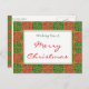 En vykortsmall för anpassningsbar God jul med bakgrunden mönster av elegant fleur de lis-plattor på ena sidan och plats för returadressen på baksidan i rött och grönt brev. Anpassa den om du vill ändra typsnitt, storlek och mer, även spara som du utformar för senare.