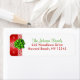 Den här juladressetiketten för festive och roligt red, grönt och vit personlig har en stor metallbuske grönt på den, tillsammans med rött och vitt strimpat rosett band som matchar de julkort som visas nedan. Anpassa den med din egen returadress. Om du behöver hjälp kan du skicka e-post till niteowlstudio@gmail.com.