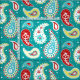 Den gulliga och skämtsamma hand plockadepaisley blommönstret i vibrerande turkoskrickablått som är röda och, tänder - gult.
