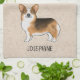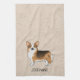 Röd gul trefärgspepsbrun walesisk Corgi med text Kökshandduk