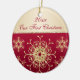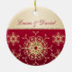 Kom ihåg din speciella dag med den vackra röda och guld faux glitter (PRINTED) snöflingor-rund formad keramik i julen tillsammans med prydnadsföremål som kan anpassas efter namnen av bruden och brudgummen och året därpå. Du kan anpassa texten så att spelar ingen roll du vill. ****Kontrollera att texten är placerad där du vill ha den, eftersom den skrivs ut som den visas på bildskärmen. Zazzle kommer INTE att korrigera någonting. Den matchar också bröllopsinbjudan som visas nedan. Om du vill ha en annan form eller om du behöver hjälp kan du skicka e-post till niteowlstudio@gmail.com.