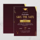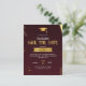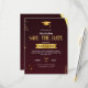 Gör din firande oförglömlig med detta röda och gyllene klassiska examens flata spara datum svars kort. Med en djärv och elegant design är det perfekt för att tillkännage din examen på ett sofistikerat sätt. Helt anpassningsbart för att matcha din feststil!