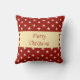Anpassa den här juldynan, kudda med din familj namn. Designad i rött med vita stjärnor. En guld-bandets framsida och baksida, med röda stjärnor med din familj namn på framsidan och God jul på baksidan. All text kan ändras.