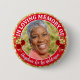 Röd & Guld Ro Elegant Memorial Funeral Photo-knapp. Lägg till anpassningsbarnas foto och text. Red, Guld och White färg.