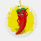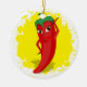 En röd och het tecknad pepparfigur. Originell design med gul färgsprut i bakgrunden.